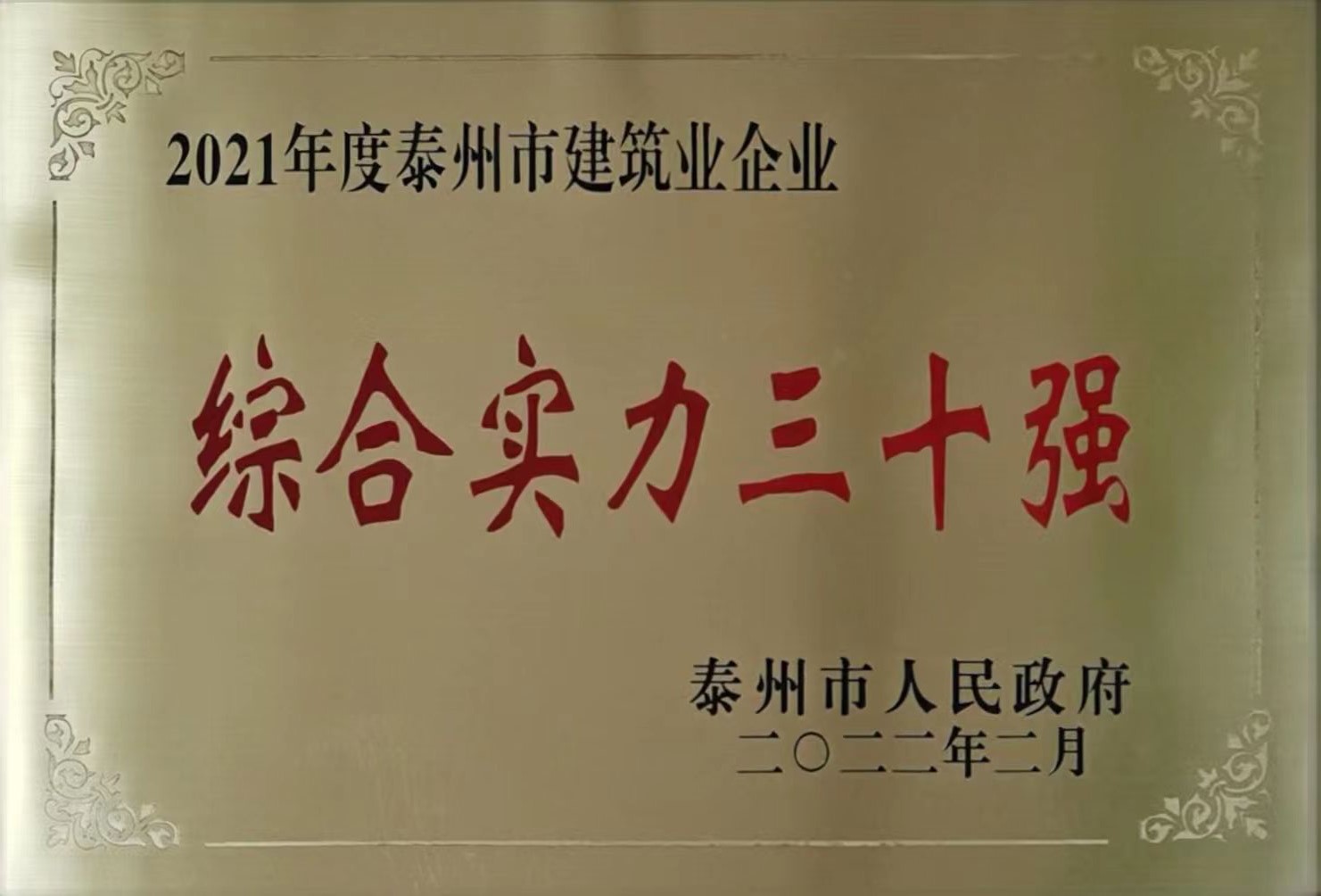 “江蘇省建筑業(yè)優(yōu)秀企業(yè)”、“江蘇省建筑業(yè)最具成長性百強(qiáng)企業(yè)”,2016年被國家工商總局授予“國家級(jí)守信用重合同企業(yè)”,2015年被全國總工會(huì)授予“全國模范職工之家”稱號(hào),2018年被中國建筑企業(yè)協(xié)會(huì)評(píng)為“2017年度建筑業(yè)AAA級(jí)信用企業(yè)”